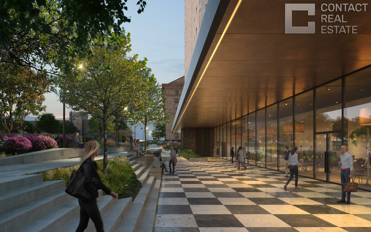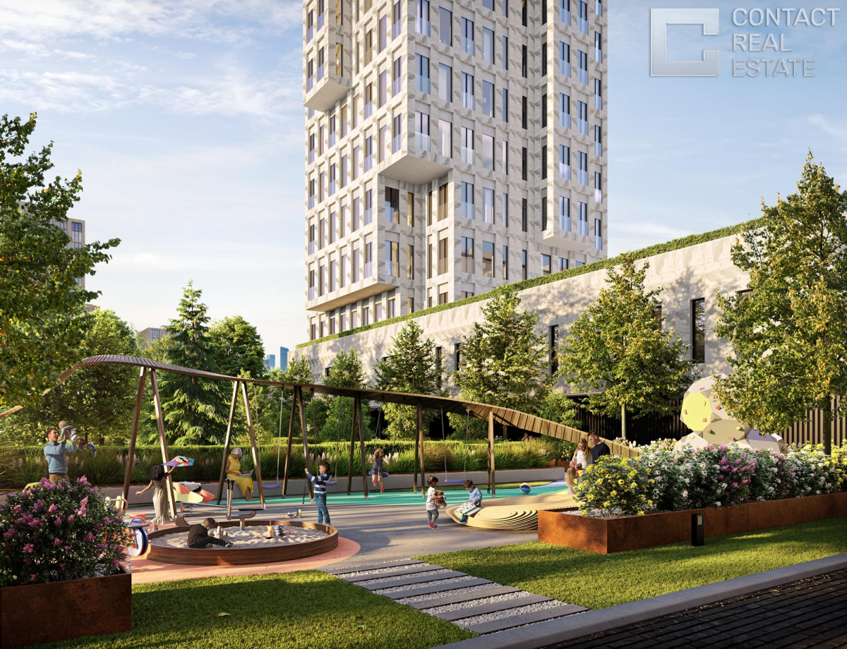 Особое внимание уделено озеленению жилого комплекса: ландшафтный дизайн предусмотрен как во внутреннем дворе дома, так и на крыше стилобата. Для удобства семей с детьми в закрытом «дворе без машин» спланирована большая детская площадка. В двухуровневом подземном паркинге, рассчитанном на 158 машиномест, размещается автомойка. К услугам жителей – элегантные дизайнерские лобби и гостиная-амфитеатр под открытым небом.