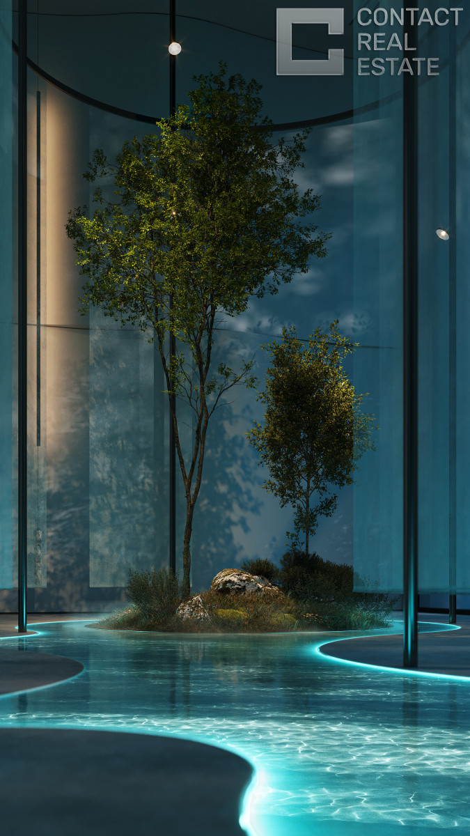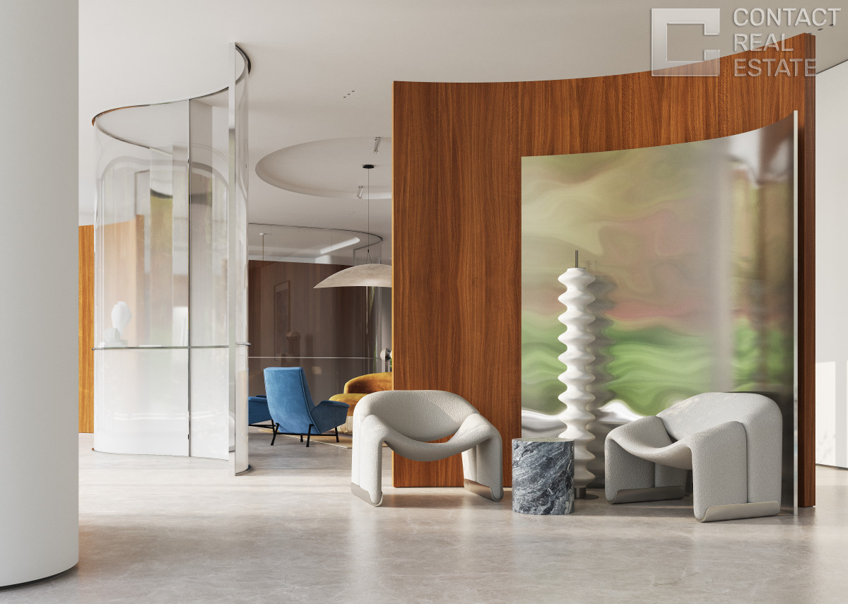 Среди эксклюзивных форматов: двухуровневые квартиры площадью 290 - 310 м² с приватным патио, дровяными каминами и собственными лифтами из паркинга; уникальные пентхаусы площадью 350 - 403 м² с дровяными каминами и террасами.