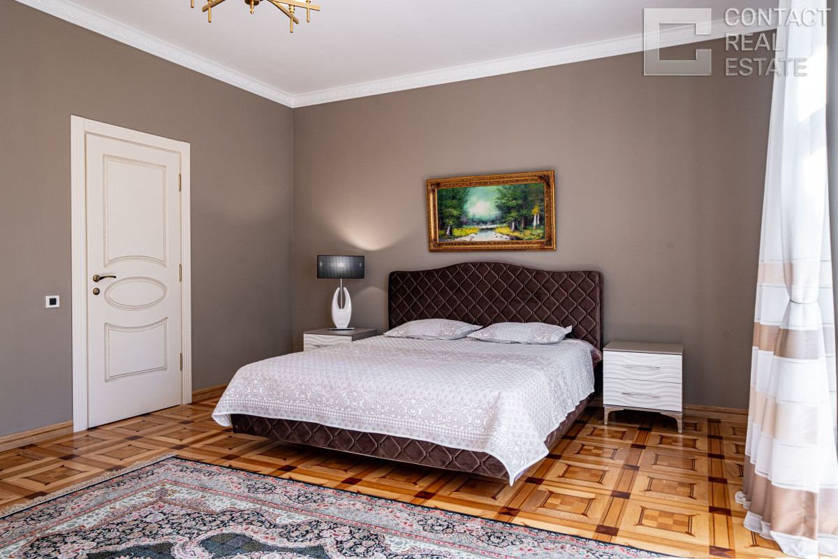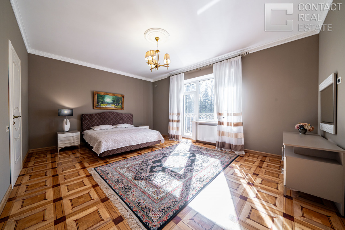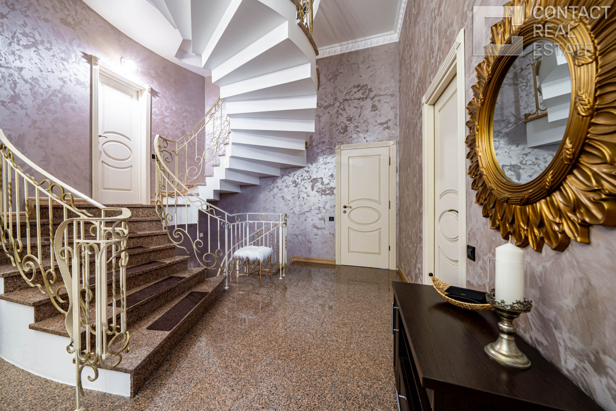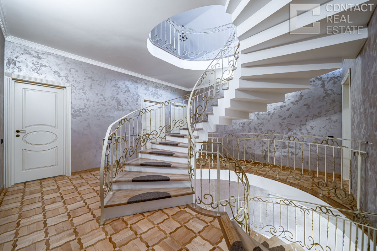 2 этаж: хозяйская спальня с гардеробной, будуаром и санузлом, 3 спальни с гардеробными и ванными, 2 балкона.
