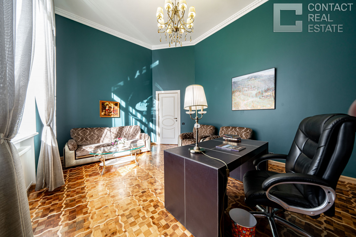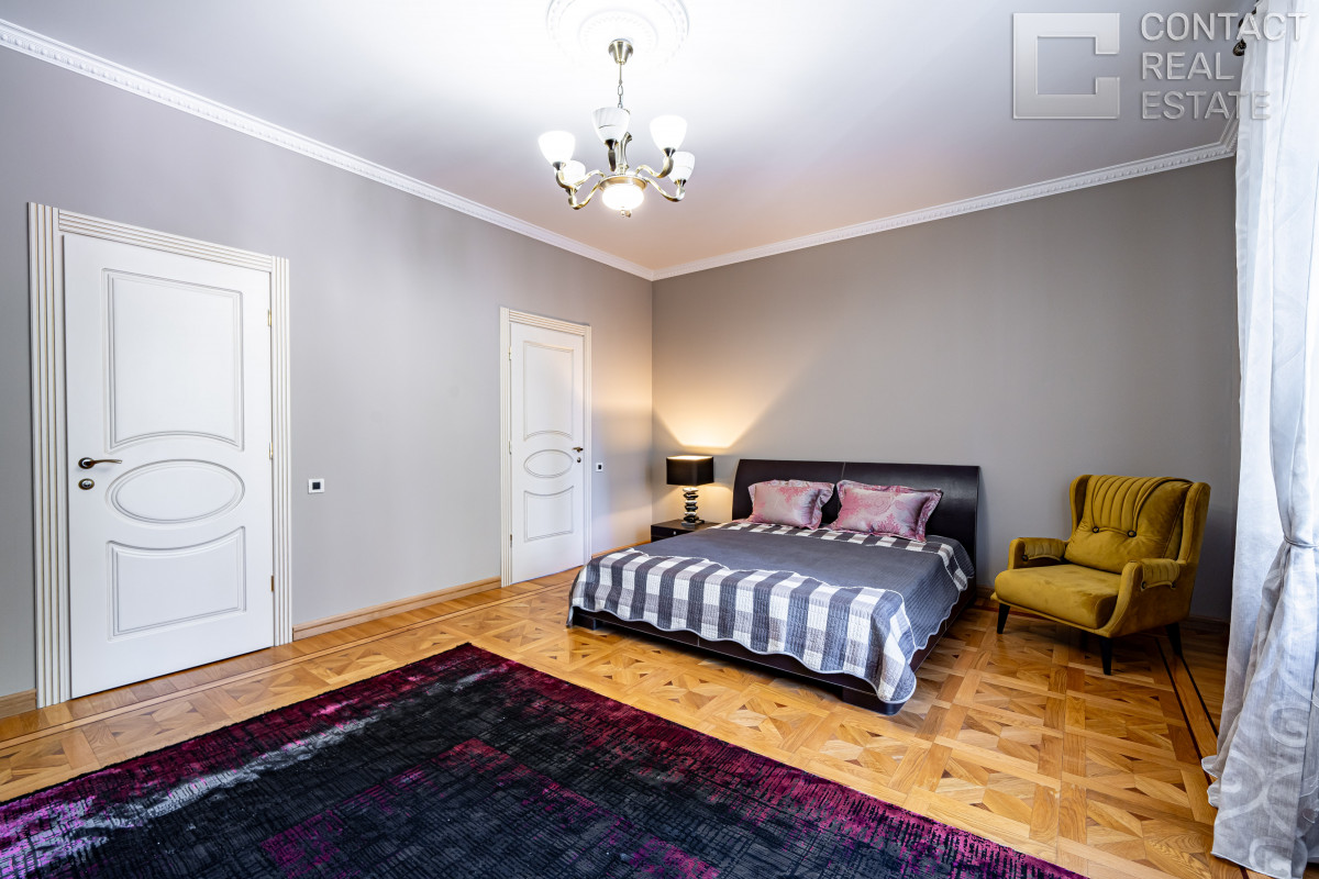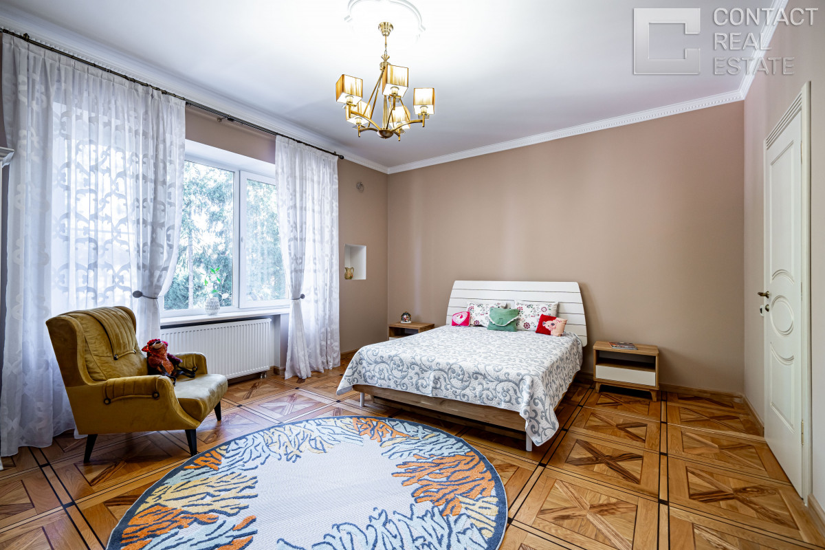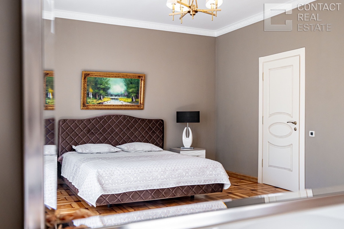 2 этаж: хозяйская спальня с гардеробной, будуаром и санузлом, 3 спальни с гардеробными и ванными, 2 балкона.
