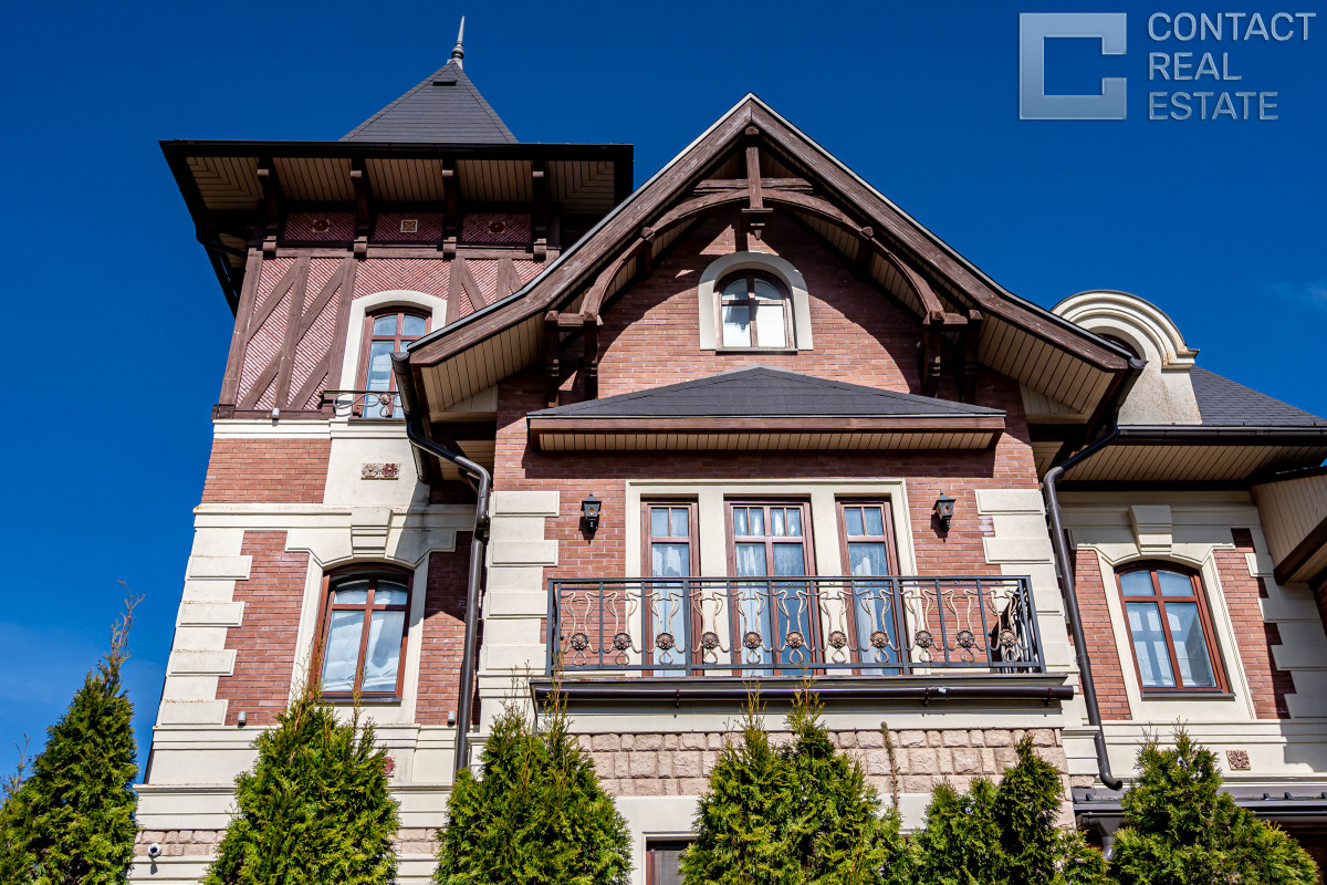 Площадь дома составляет 450 квадратных метров, и это прекрасный образец элегантного и современного стиля. Дом состоит из трех уровней, на которых расположились просторная гостиная с камином, столовая зона, уютная кухня, четыре спальные комнаты, балконы с красивым видом и терраса. В доме также есть две ванные комнаты и три туалета.