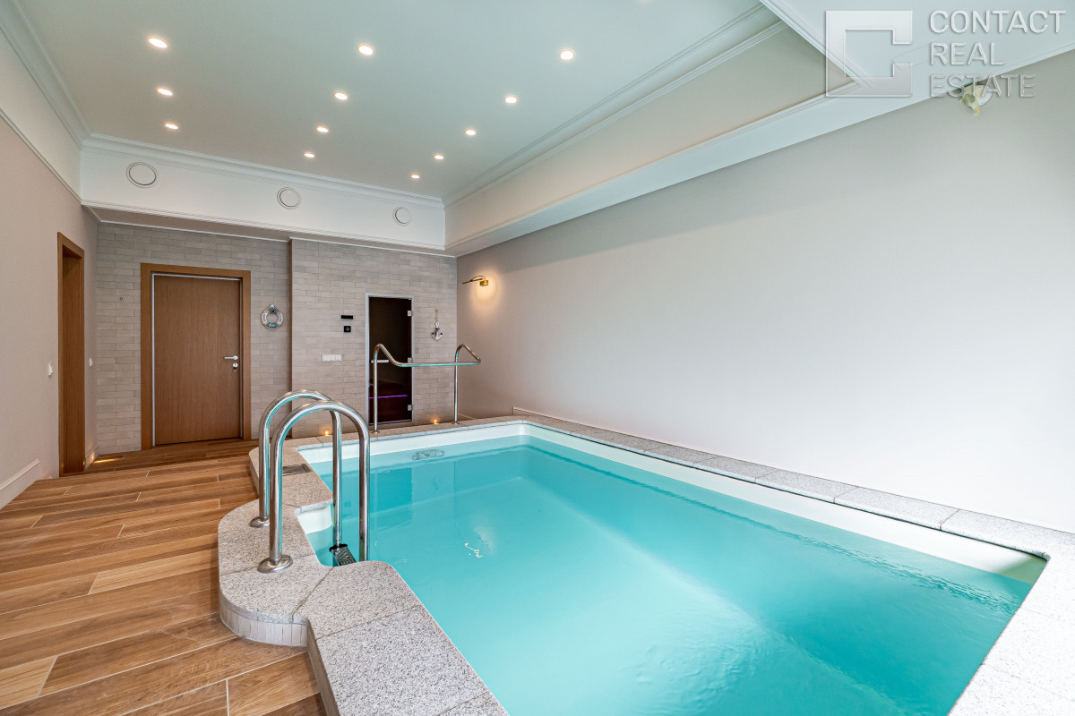 1 этаж - прихожая, гардеробная, кухня, столовая, гостиная с выходом на террасу, гостевая ванная комната, СПА-зона сбассейном, сауной и душевой.