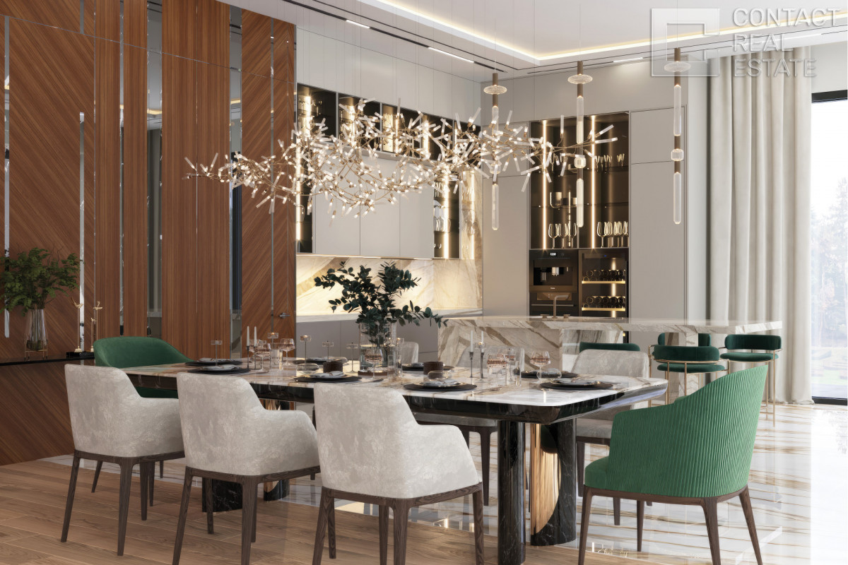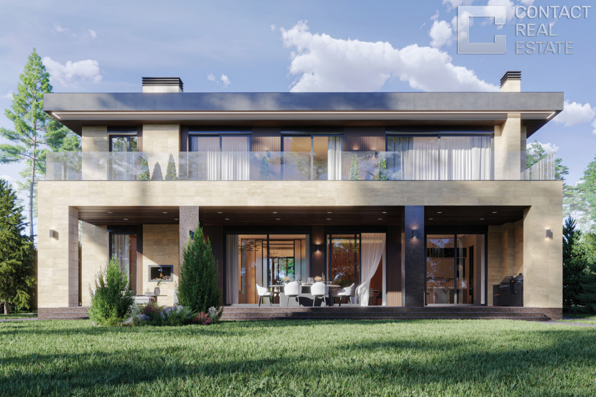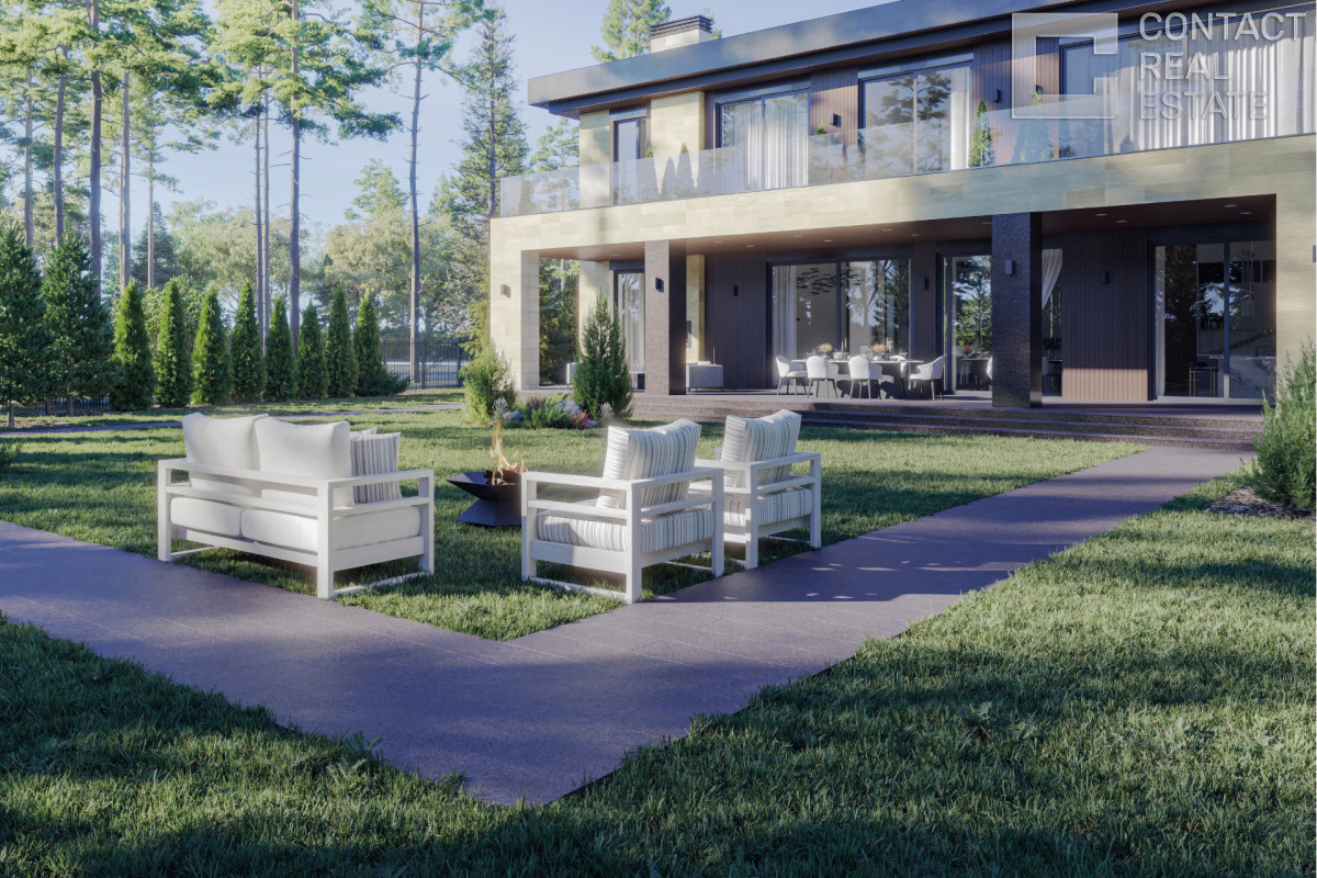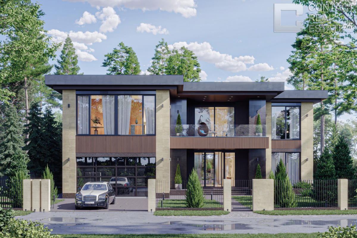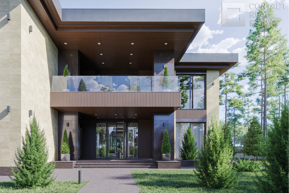 Современный двухэтажный загородный дом площадью 1 000 м² построен на участке 21,75 соток в закрытом элитном поселке с уникальным ландшафтом — водопадами, реками, озёрами и холмами. Отделка фасада: природный камень,широкоформатный керамогранит, натуральное дерево. Высококлассная мебель, техника от ведущих мировых производителей (Miele, Neff, Kuppersbush), предметы интерьера и отделочные материалы премиального уровня. На участке выполнен авторский ландшафтный дизайн с прокладкой инженерных систем: освещение, автополив, дренаж. К услугам жителей поселка: гольф-академия и ресторан, собственный спортивный комплекс, теннисные корты, оборудованные дорожки для конных прогулок, спа-центр, детский клуб и собственная вертолетная площадка.