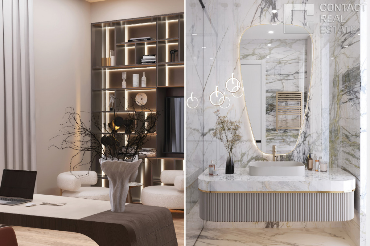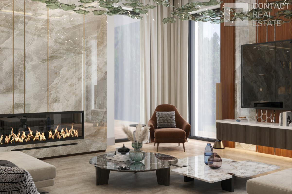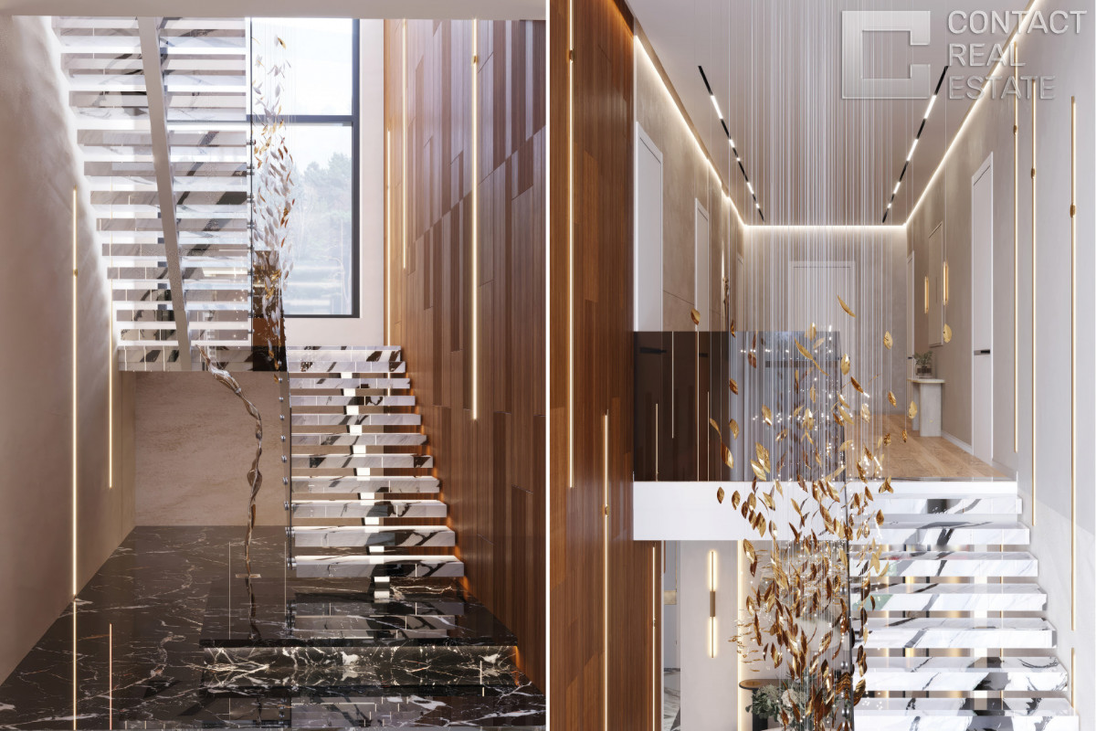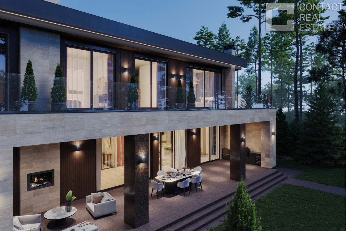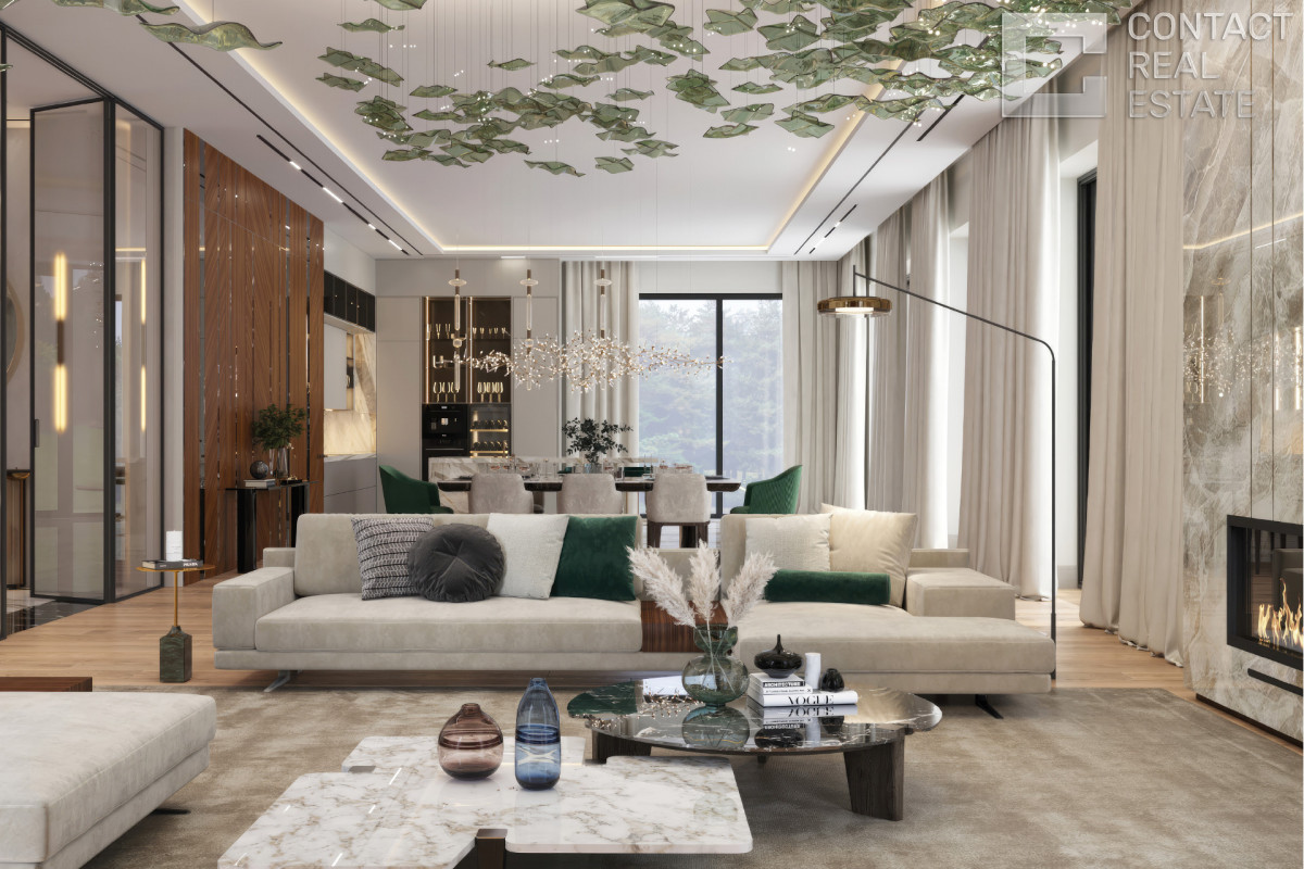 Современный двухэтажный загородный дом площадью 1 000 м² построен на участке 21,75 соток в закрытом элитном поселке с уникальным ландшафтом — водопадами, реками, озёрами и холмами. Отделка фасада: природный камень,широкоформатный керамогранит, натуральное дерево. Высококлассная мебель, техника от ведущих мировых производителей (Miele, Neff, Kuppersbush), предметы интерьера и отделочные материалы премиального уровня. На участке выполнен авторский ландшафтный дизайн с прокладкой инженерных систем: освещение, автополив, дренаж. К услугам жителей поселка: гольф-академия и ресторан, собственный спортивный комплекс, теннисные корты, оборудованные дорожки для конных прогулок, спа-центр, детский клуб и собственная вертолетная площадка.