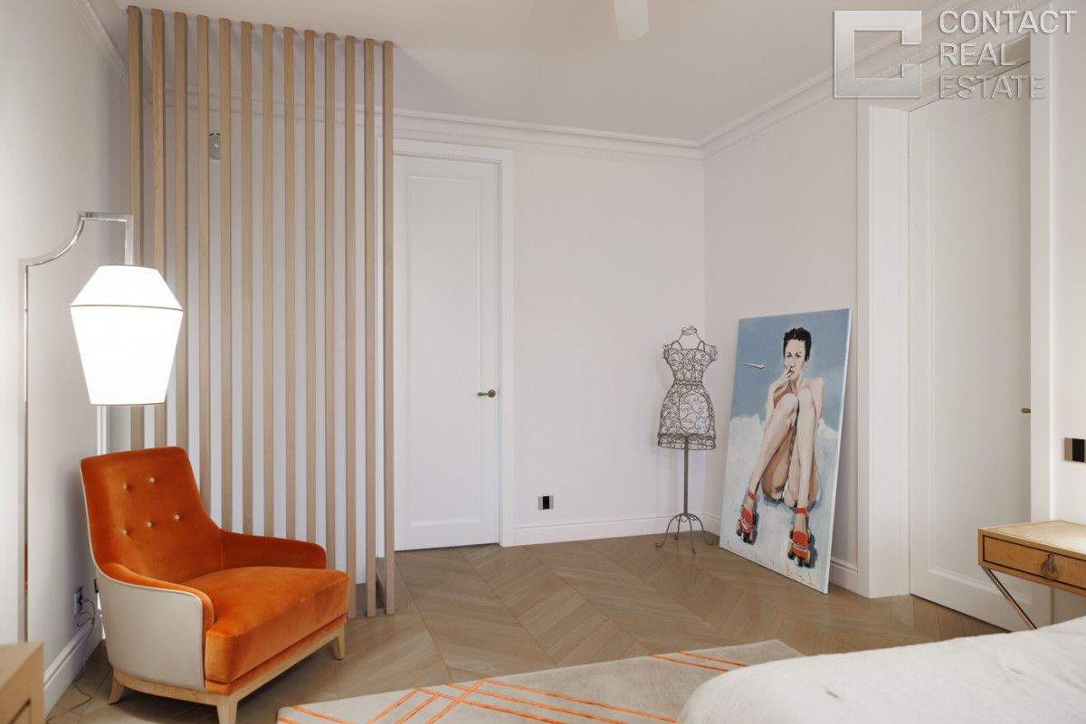 Дом площадью 520 м² с готовой отделкой вмещает в себя холл, кабинеты, игровую комнату, кинотеатр, винную комнату, тренажерный зал, комнату звукозаписи, кухню, каминный зал, гостиную, библиотеку и спальни. В доме также расположен гараж. Мебель, предметы декора и бытовая техника изготовлены ведущими мировыми производителями, в частности, светильники – «ЦЕНТРСВЕТ», люстра – Serip, диваны, обеденный стол, стулья, комоды – Roche Bobois, кухня – TEAM 7, камин – ArtKante, ковры – Dovlet House. Спокойные оттенки, натуральные материалы, большие окна, премиальная мебель и грамотная планировка подчеркивают
